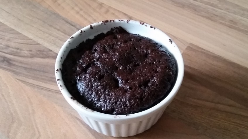 Die Masse in eine mikrowellengeeignete, kleine Schale oder Tasse füllen.