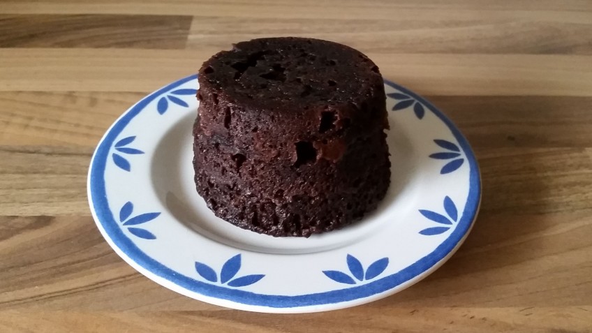 Danach herausnehmen, auf einen kleinen Teller stürzen und kurz auskühlen lassen.